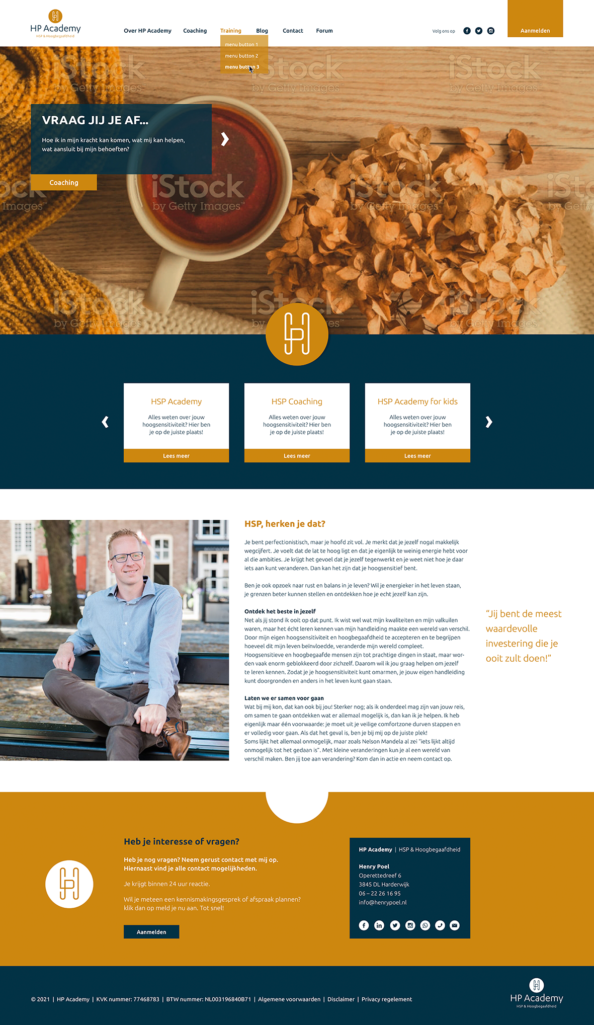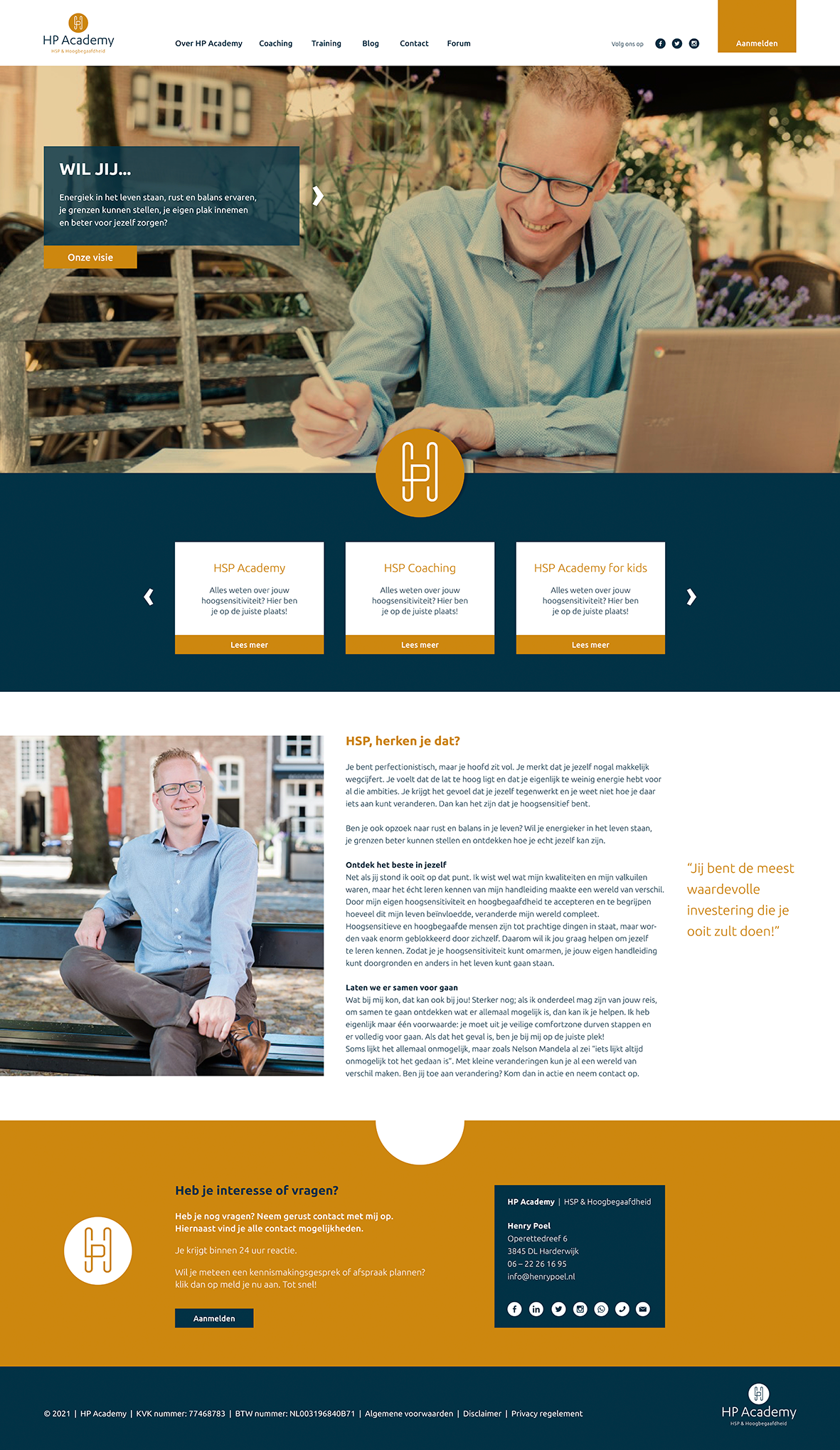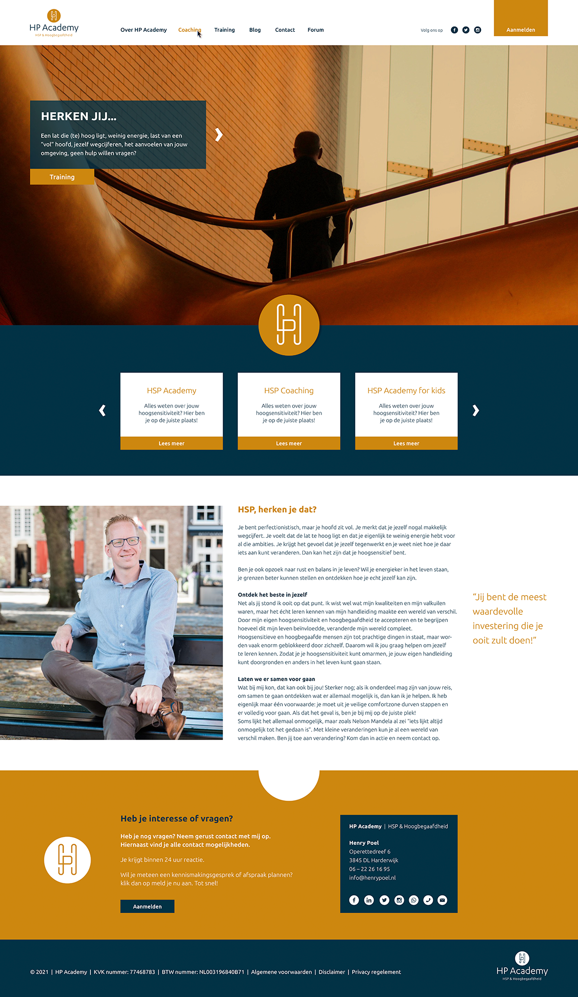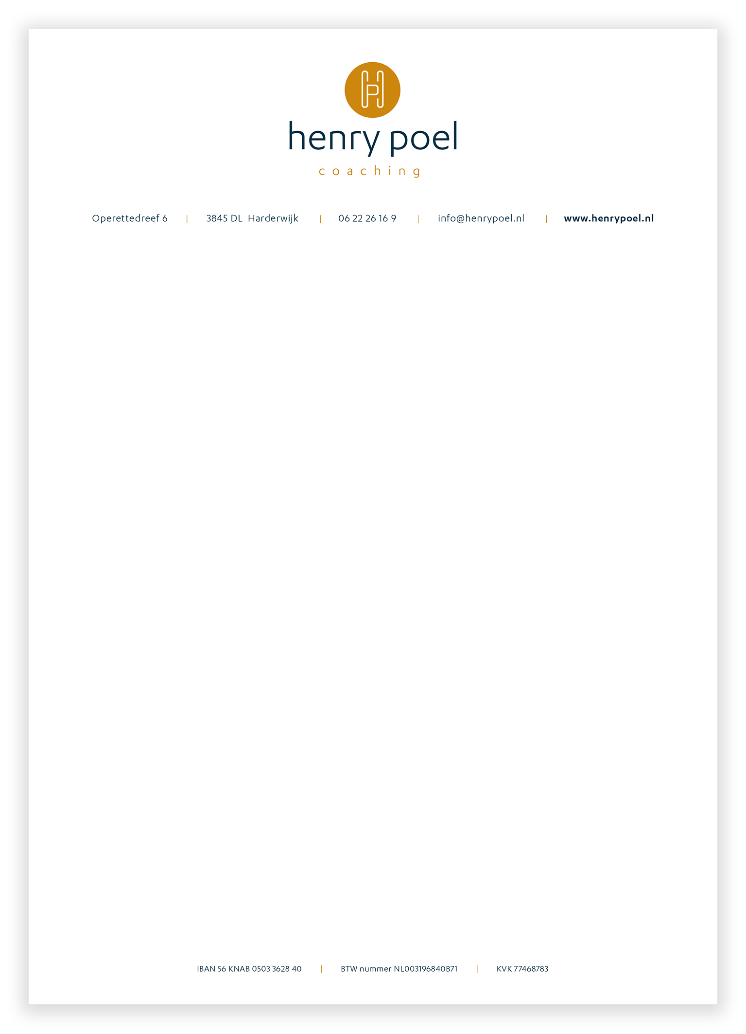 Huisstijl en logo ontwikkeling voor Henry Poel coaching. Vormgeving van website en templates voor de HP Academy.