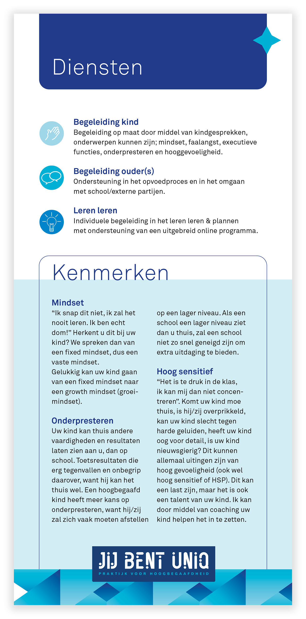 Vormgeving van digitale flyer en website voor 'Jij bent Uniq'.