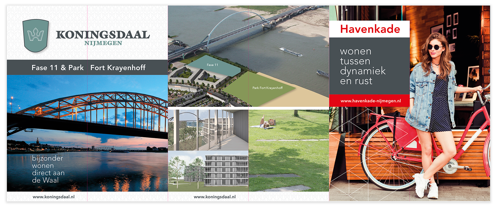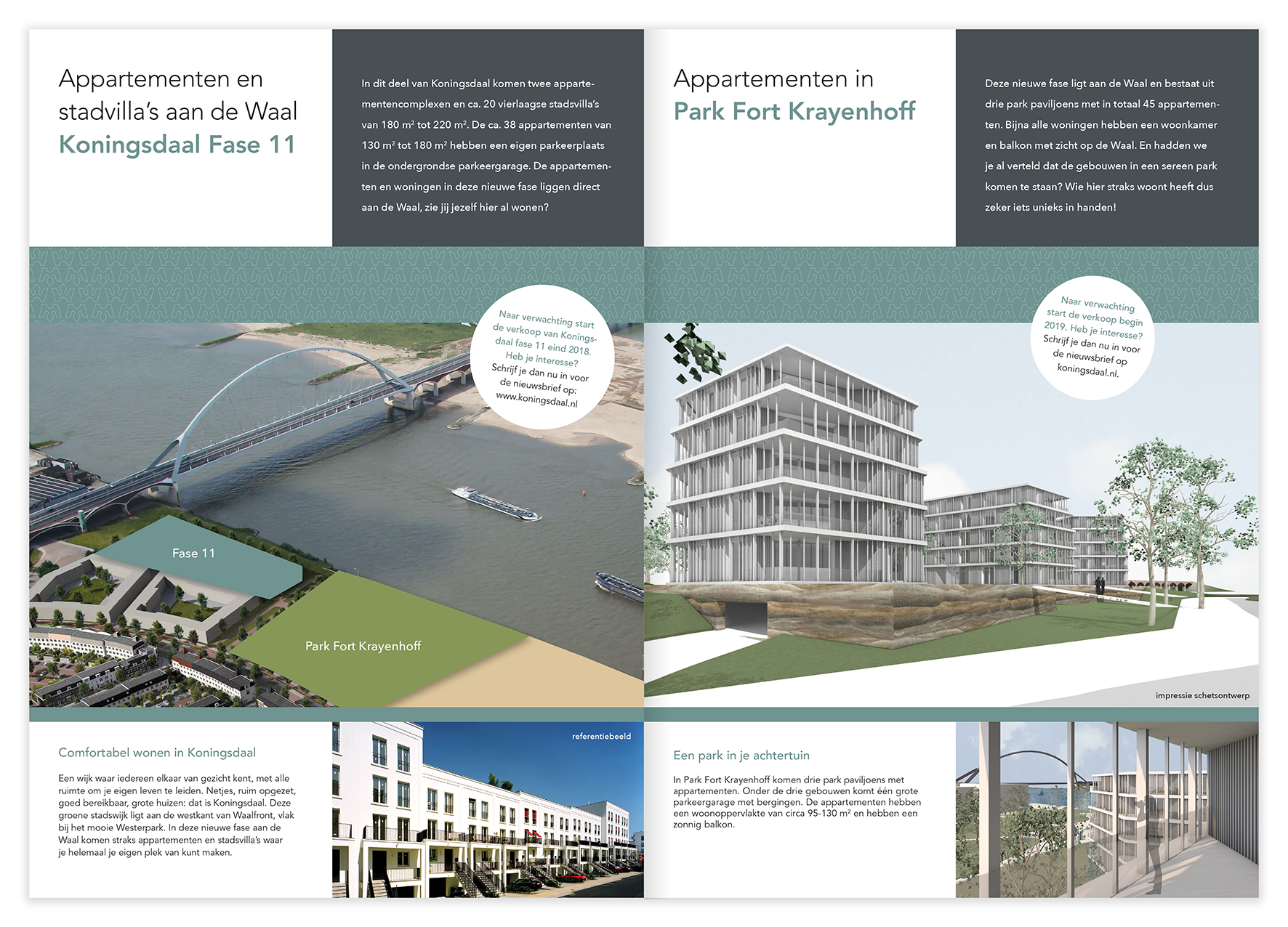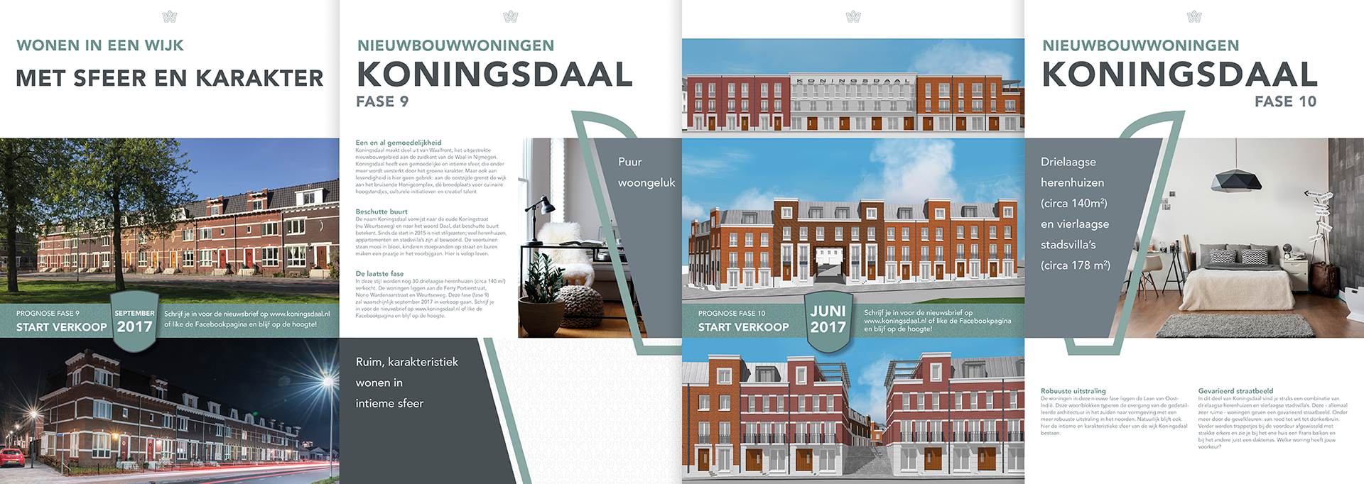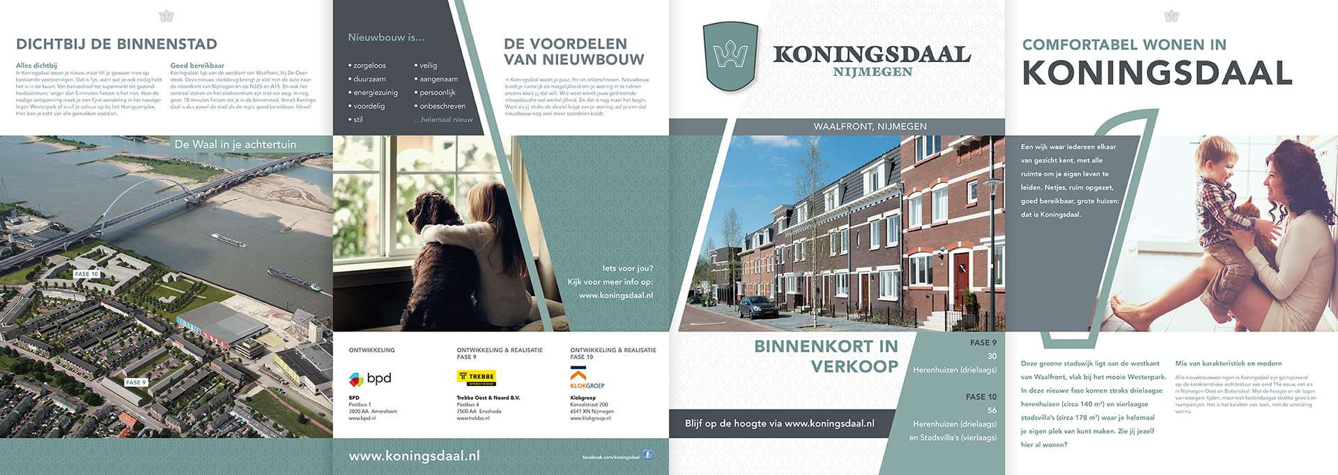 Brochure, flyers, 4-luik en beurswand voor nieuwbouwproject Koningsdaal, Nijmegen.